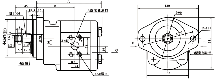 2.非額定工況下(壓力、轉速)的容積效率值參見(jiàn)工作性能曲線(xiàn)。 |