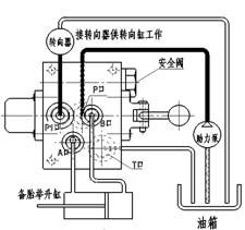 3.換向閥在中位時(shí)P口到P1口,此時(shí)P1口接轉向器