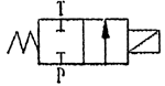 當車(chē)廂舉升到最大轉角位置時(shí),限位機構觸點(diǎn)將電器行程開(kāi)關(guān)的觸點(diǎn)壓下,電磁鐵N得電,換向閥P口與T口接通,使舉升缸供油口與T口瞬間連通,舉升缸即下降一段距離(車(chē)廂舉升轉角變小),隨車(chē)廂舉升轉角變小限位機構觸點(diǎn)離開(kāi)電器行程開(kāi)關(guān)的觸點(diǎn)使電磁鐵N失電,電磁換向閥恢復原始狀態(tài)同時(shí)系統壓力油再次進(jìn)入舉升缸使其上升(車(chē)廂再次舉升到最大轉角位置)。電磁鐵N在電器行程開(kāi)關(guān)得電—失電—得電范圍內(即P口的開(kāi)啟—閉合—開(kāi)啟)實(shí)現車(chē)廂下降—舉升—下降往復變化過(guò)程,使車(chē)廂產(chǎn)生輕微抖動(dòng)有利于將車(chē)廂內的殘留物體卸掉。該閥的工作原理示意圖如下。